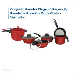 Conjunto cozinha completo - 9 peças - 8 peças em alumínio com revestimento antiaderente - 1 panela segura e eficiente - até 4,5l - frigideira, fervedor e caçarola com tampa de vidro - utensílios de nylon inclusos: espátula, concha, escumadeira Alumínio durável e leve - troca rápida de calor, ideal para preparo ágil - revestimento interno antiaderente evita que os alimentos grudem Design moderno em vermelho - visual vibrante que valoriza sua cozinha - acabamento liso e elegante, combina com qualquer ambiente Utensílios premium inclusos - kit de nylon protegem o revestimento - ideal para uso diário, sem riscos de arranhar Panela com trava de segurança - preparos rápidos e eficientes - segurança elevada em cada uso Informações técnicas - material: alumínio leve e resistente - cor: vermelho - marca: dona chefa -------------------- Sobre nós: Especificações técnicas: Informações técnicas - material: alumínio leve e resistente - cor: vermelho - marca: dona chefa Marca: Não Informado