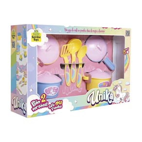 Com o Kit Panelinhas Unika Samba Toys, a brincadeira de casinha ganhará um toque especial de diversão e imaginação. Este jogo completo de peças de cozinha é perfeito para as pequenas chefs prepararem um delicioso jantar em sua própria cozinha de brinquedo. As meninas vão se encantar com as panelinhas e acessórios com estampa de unicórnio, permitindo que elas brinquem de forma criativa e segura. Elas poderão se divertir cozinhando como verdadeiras chefs, dando asas à imaginação enquanto criam pratos mágicos.O Kit Panelinhas Unika Samba Toys é composto por 4 panelas com tampa, 1 espátula, 1 colher e uma concha, oferecendo tudo o que as crianças precisam para se aventurar na cozinha de brincadeira. Além de proporcionar momentos de pura diversão, o conjunto de panelas de brinquedo também estimula a socialização e a integração. As crianças vão adorar imaginar que estão recebendo visitas para jantar e poderão convidar seus amigos ou familiares para participar dessa brincadeira encantadora.A brincadeira de casinha vai muito além de apenas preparar refeições fictícias. Com o Kit Panelinhas Unika Samba Toys, as crianças desenvolverão habilidades importantes, como a coordenação motora fina, ao segurar os utensílios de cozinha e mexer nas panelas. Elas também exercitarão sua criatividade ao criar receitas imaginárias e explorar diferentes combinações de ingredientes. Deixe suas pequenas chefs explorarem seu lado culinário e desfrutarem de uma brincadeira cheia de sabor e encanto.