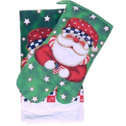 Kit Pano de Prato Felpudo e Luva de Forno Natal Bene Casa Noel -
