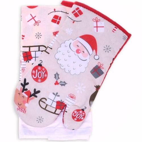 Kit Cozinha Natalino O Kit Cozinha Natalino da linha Bene Casa é o complemento ideal decorativo para sua cozinha nesse natal. O kit contém 2 peças, sendo uma luva de forno de 30x17cm com estampa de natal e um pano felpudo de copa com estampa combinando. O Kit é perfeito para unir peças úteis e decorar ao mesmo tempo