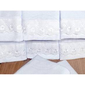 Prático e lindo esse kit de pano de prato vai deixar sua casa mais elegante Confeccionados em tecido 100% algodão na cor branco, com 8 unidades, detalhes em bordado ingles na cor branco. São produtos que agregam qualidade e beleza com estampas modernas, que vão deixar sua casa ainda mais aconchegante com produtos que proporcionam conforto e beleza na hora de receber sua família. Além de ter uma grande facilidade de absorção na hora de enxugar as louças do almoço e do jantar.