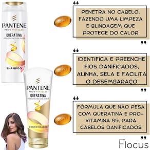 Kit Pantene Miracles Ampola Umectante Milagroso Nutrição Bem vindo a a loja Flocus. É um prazer tê-lo a como nosso a cliente CONTEÚDO DO KIT: 1 Pantene Pro-V Miracles Shampoo Queratina - 175 ml 1 Pantene Pro-V Miracles Condicionador Queratina - 150 ml 3 u. pantene pro-v Ampola Tratamento Nutrição Umectante 15ml cada Você já reparou o quanto você expõe o seu cabelo ao calor sol, Chapinha, Secador, modelador de cachos... . Apresentamos o shampoo e condicionador Pantene Queratina Preenche & Blinda, nossa fórmula Pro-V Miracles com Queratina. O shampoo penetra no cabelo, fazendo uma limpeza e blindagem que protege, enquanto o condicionador identifica e preenche fios danificados, para alinhar e selar, facilitando o desembaraço. Use o shampoo e condicionador e a linha completa Preenche & Blinda para uma reparação contra danos causados até pelo calor. Cabelos mais resistentes e brilhantes. Fórmula que não pesa com Queratina e Pro-Vitamina B5, para cabelos danificados. Ph balanceado. Descubra a nova fórmula da Ampola Capilar Pantene com Pérolas Pro-Vitaminas solúveis, que vai completar o seu cronograma capilar. Possui 2X mais poder nutritivo. Sua fórmula com Pérolas Pro-V que se dissolve no creme e Bambu é um preenchimento capilar com milhões de lipídios concentrados, deixando os cabelos fortes e nutridos. Ideal para cabelos com frizz ou pontas duplas. Transformação como você nunca viu, nem sentiu antes pro-vitaminas. extrato de Bambú. pérolas Pro-Vitaminas. INDICAÇÃO: Cabelo danificado; Cabelo opaco; Cabelo sem brilho. MODO DE USO: 1passo: Shampoo: Aplique sobre o cabelo úmido, massageie suavemente o couro cabeludo com a ponta dos dedos em movimentos circulares Enxágue e repita se necessário. Tire o excesso de água. 2passo: Ampola Pro-V: coloque o produto na palma da mão, misture com os dedos até dissolver as pérolas Pró-V no creme aplique uniformemente no cabelo úmido, do meio até as pontas. deixe gir por 3 minutos enxague bem. pode ser como potencializador na sua rotina de cronograma capilar. 3passo: Condicionador: Aplique uniformemente no cabelo úmido. Penteie com os dedos. Enxágue bem. Use a linha completa Queratina Preenche & Blinda para uma reparação contra danos causados até pelo calor. Cabelos mais resistentes e brilhantes. Agradecemos por escolher a Loja Flocus e por confiar em nós para cuidar da beleza dos seus cabelos. Em caso de dúvidas, favor enviar sua pergunta Flocus Marca: Não Informado