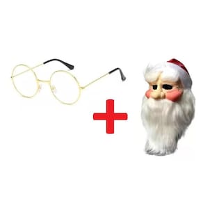 Contém: 1 Máscara de Papai Noel de Látex com Barba e Cabelo em pelúcia + Gorro+ óculos
