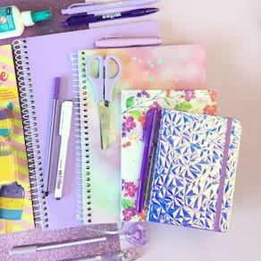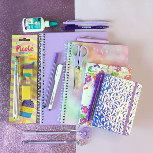 Kit papelaria recheado tons de roxo Especificações - 1 caderno capa dura 80 folhas medidas: 17,7 x 20,0 cm - estampa ou tom pastel - envio aleatório - 1 caderno universitario roxo ou lilás espiral - estampa aleatória - 1 borracha tom pastel ou neon - aleatório - 1 apontador com depósito 40 cm tom pastel ou neon - aleatório - 2 lápis - tom pastel ou neon, estampa aleatórias - 2 marca texto tom pastel ou neon - aleatório - 2 canetas fofas com pingente glitter ou animadas - 2 caneta fine line - 1 tesoura - 1 cola liquida - 2 canetas esferográficas - 1 agenda - 1 cadernetinha Atenção nas medidas dos caderno por favor, os itens lápis, borracha e apontador são enviados pastel ou de maneira aleatória Canetas fofas com glitter envio de maneira aleatória Marca: Não Informado Ean: 3712012562250
