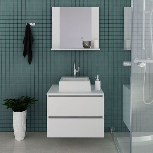 O Kit para Banheiro é a escolha ideal para transformar o seu espaço em um ambiente elegante e organizado. Com um design atual, ele oferece não apenas beleza, mas também funcionalidade, contribuindo para um banheiro agradável e útil. Produzido com materiais de alta qualidade, o kit garante durabilidade e resistência, criando um ambiente harmonioso e agradável para o seu dia a dia. CARACTERÍSTICAS TÉCNICAS: - Produzida em MDP de 15 mm - Acabamento UV na cor Branco - Acompanha Espelho - Cuba em Mármore Sintético - Balcão Suspenso - Gavetas com Corrediças Metálicas - Puxador tipo Cava *Kit Composto por Gabinete Suspenso (3607), Espelheira (3610) e Cuba (3630) INFORMAÇÕES TÉCNICAS: 3607: Alt. 46,5 cm x Larg. 60 cm x Prof. 46,9 cm x P. 15,9 kg 3610: Alt. 54 cm x Larg. 60 cm x Prof. 15,6 cm x P. 6,35 3630: Alt. 11,5 x Larg. 35 x Prof. 34 cm P. 5,5 kg INFORMAÇÕES ADICIONAIS: - ATENÇÃO: Não trabalhamos e não nos responsabilizamos pela montagem do móvel. Antes da montagem conferir se o produto está de acordo com o que comprou, produto montado e danificado pela montagem não será aceito troca. Montagem e instalação por conta do comprador. - As imagens ambientadas são meramente ilustrativas e podem apresentar itens que não compõe o produto. As cores do produto podem variar de acordo com o monitor, a iluminação do ambiente ou sua percepção visual. - Limpeza: Deve ser feita com pano macio e seco ou levemente. Não devem ser utilizados abrasivos como palha de aço e objetos cortantes. Garantia para defeitos de fabricação conforme Código de Defesa do Consumidor.
