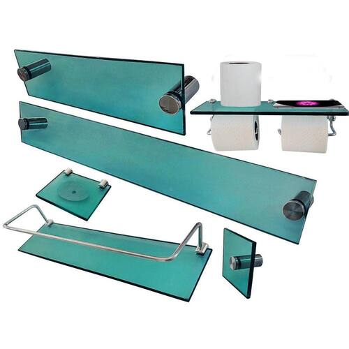 Dimensões do produtoPorta toalha de rosto 9x30 cmPorta toalha de corpo 9x60 cmCabide 10x10 cmPapeleira Dupla 12x35 cmPorta shampoo de vidro com proteção 10 x 30 cmSaboneteira reta de vidro 10x12 cmCaracterísticasMaterial vidro/alumínio brilhanteVidro verde polido e lapidadoSaboneteira com furo para escoar a águaProduto de fácil instalaçãoItens de alta qualidade, estilo e modernidade para o seu banheiroKit de instalação inclusoAcessóriosSuporte fendaParafusosBuchasMini parafusosObservaçõesImagens meramente ilustrativasMedidas do produto são aproximadas