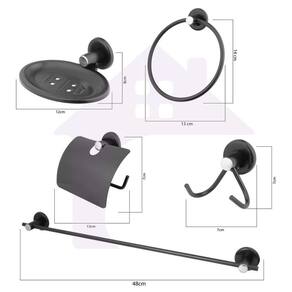 Kit acessórios banheiro inox 5 peças + 2 porta shampoo canto cod 279 preto fosco