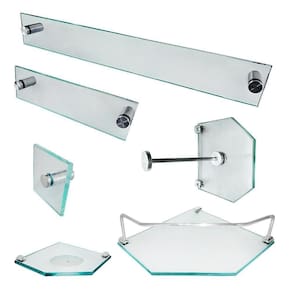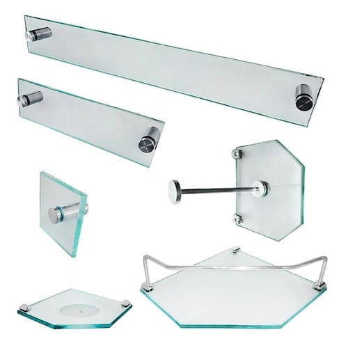 Características Material vidro/alumínio brilhante Vidro incolor polido e lapidado Saboneteira com furo para escoar a água Produto de fácil instalação Itens de alta qualidade, estilo e modernidade para o seu banheiro Kit de instalação incluso