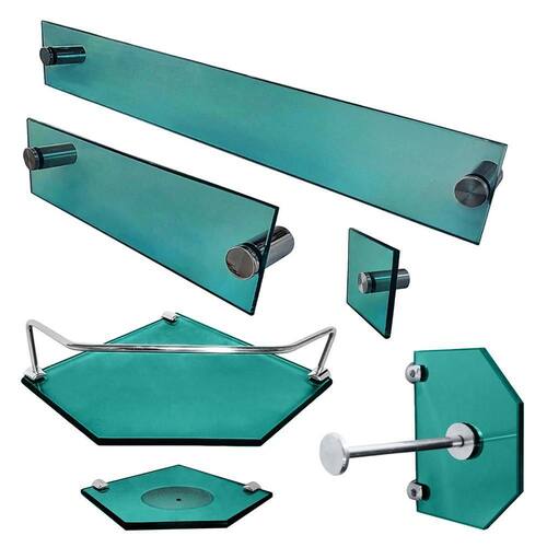 Características Material vidro/alumínio brilhante Vidro verde polido e lapidado Saboneteira com furo para escoar a água Produto de fácil instalação Itens de alta qualidade, estilo e modernidade para o seu banheiro Kit de instalação incluso