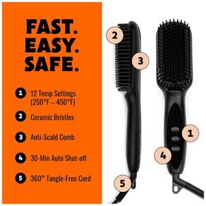 Aquecimento rápido e cerdas cerâmicas o alisador de barba Tame the Wild vem com um cabo sem emaranhamento de 360 graus para uma experiência de alisamento rápida e suave que funciona muito bem em barbas e cabelos. Nosso alisador de barba masculino tem cerdas de cerâmica para um pincel suave. Design anti escaldadura para proteção da pele O design anti escaldadura da nossa escova para alisar a barba protege a pele do calor. Todos os elementos essenciais de que você precisa para endireitar sua barba Nosso kit para alisar barba contém um alisador de pente anti escaldadura, spray de proteção contra calor, sabonete para barba, bálsamo para barba e um pente para desembaraçar. Embalado em uma caixa de zenamento, é um maravilhoso conjunto de barba para presente. Neutralize o fedor da barba seus poros produzem sebo, que se acumula na barba, criando um odor fedorento. Nosso sabonete natural para barba para homem é projetado para neutralizar as causas do fedor da barba, e o aroma cítrico de laranja vai deixar sua barba com um cheiro incrível Marca: Não Informado