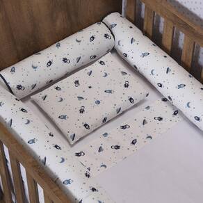 Kit para Berço Jogo de Lençol com Rolinhos 100% Algodão 7 Peças - Space