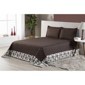 Kit Para Cama Queen Vitória Babado Marrom 3 Peças
