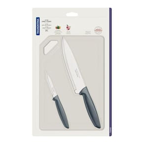 Kit Para Carnes E Legumes Tramontina Plenus Em Aço Inox Cabos Cinza E Tábua De Corte 3 Peças Tramontina Kit para Carnes e Legumes Tramontina Plenus em Aço Inox Cabos Cinza e Tábua de Corte 3 Peças Tramontina - Facas práticas e de qualidade são essenciais na nossa cozinha. Com o Kit para Carnes e Legumes Tramontina Plenus com Lâminas em Aço Inox Cabos de Polipropileno Cinza e Tábua para Cortar 3 Peças da Linha Plenus você vai encontrar peças que atendem aos diferentes usos. Estão presentes nas principais refeições, as três peças cumprem o papel na cozinha. Ideal para cortar carnes e legumes, podem ser levadas à máquina de lavar louças. Produzidas com cabos em polipropileno cinza e lâmina em aço inox e tábua em polipropileno, são resistentes e fáceis de manusear.OrientaçõesLâminas em aço inox. Cabos de polipropileno. Tábua para cortar de polipropileno.ObservaçõesUSO SEGURO E ADEQUADO: Antes da primeira utilização, lave bem as peças e seque-as. Tenha cuidado ao manusear produtos cortantes e perfurantes e mantenha-os fora do alcance de crianças. Para maior durabilidade dos produtos, recomenda-se secar bem antes de guardar, mesmo após lavagem em máquina. Para descarte dos produtos e embalagens siga as orientações de reciclagem vigentes.Características GeraisEAN137891112229365DUN1417891112229362NCM8211.10.00Peso Líquido0,4200 kg.Peso Bruto0,4900 kg.Metragem0,003156 m.Dimensões Embalagem (Compr. X Larg. X Alt.)33x 244x 392 mm.Cor 153565A Hexa Características Gerais do Produto: - Cor: Cinza Garantia: - 1 Ano
