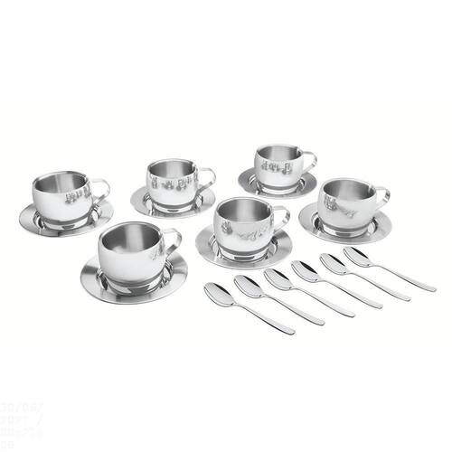 Kit para Chá e Capuccino Tramontina em Aço Inox Acabamento Brilho com Xícara Pires e Colher 18 Peças Tramontina -