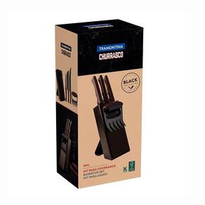 Kit Para Churrasco Black Lâminas Aço Inox Escurecido Cabos de Madeira 05 Peças - Tramontina 22999045;