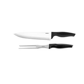 Durabilidade e eficiência com o Kit Brinox para churrasco com faca e garfo trincante, lâmina de aço inoxidável temperado, 2 peças preto linha Grosso (temperado) e acabamento polido. Proporciona uma excelente afiação em todas as facas, ideais para todos os tipos de corte. Composto por 1 Faca para Carne de 8 polegadas (32,5 cm) e 1 Garfo Trinchante com 29 cm. Este conjunto com Faca e Garfo Trinchante é a melhor solução para preparar e servir carnes com segurança e leveza. A faca para carne possui lâmina forte, larga e robusta indicada para cortes de carnes de todos os tipos. Já o Garfo Trinchante é o ideal para prender a carne para verificar o cozimento e corte pois possui dentes desenhados especialmente para estabilizar carnes assadas e mantê-las imóveis, além de manter sua mão longe de alimentos quentes. Para completar o seu churrasco conheça também a linha completa de facas Cross, afiadores de facas Brinox e tábuas de bambu para corte Haus. Após lavar seus produtos inox, enxágue bem e seque em seguida para evitar manchas. E para facilitar ainda mais o seu dia a dia, as peças podem ir à lava-louças. Totalmente fabricados no Brasil com tecnologia nacional, os talheres Brinox são os produtos de qualidade que faltavam na sua cozinha. Conheça também os demais talheres avulsos e produtos das marcas Brinox, Coza e Haus Concept para deixar a sua casa ainda mais bonita com soluções completas de organização. O Grupo Brinox, com desenvolvimento e produção no Brasil, é um dos maiores fabricantes de utilidades domésticas do Brasil. Localizado na cidade de Caxias do Sul, na Serra Gaúcha e expandindo permanentemente a sua atuação no mercado externo, o Grupo Brinox possui canais de exportação nos cinco continentes e atua ativamente em mais de vinte países. Através de suas marcas, Brinox, Coza e Haus Concept, oferece um mix de mais de 6 mil itens, e segue com seus planos de expansão como um grande participante no mercado de utilidades domésticas.