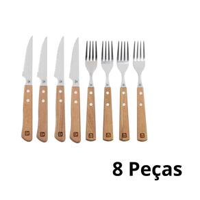 Kit para churrasco inox cabo de madeira premium 8 pcs