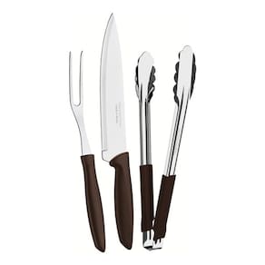 Contém: 1 pegador para carne, 1 garfo trinchante e 1 faca Chef de 8"