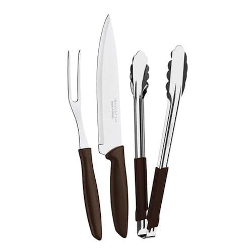 O kit para churrasco Tramontina Plenus com lâminas em aço inox e cabos de polipropileno marrom 3 peças é perfeito para você recepcionar sua família para aquela confraternização do fim de semana. Produzidas com lâminas em aço inox, as peças que compõem o kit oferecem alta resistência e durabilidade. Elas levam mais beleza à sua mesa e tem um manuseio leve e confortável, devido aos cabos de polipropileno na cor marrom. Além disso, são práticas e podem ser lavadas na máquina de lavar louças. Qualidade e eficiência você só encontra com os produtos Tramontina!