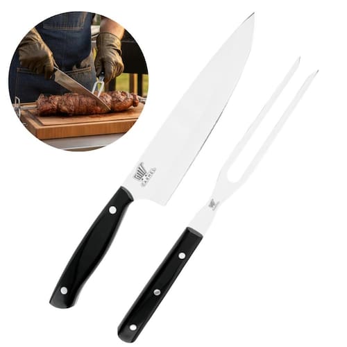 Conjuto De Faca E Garfo Para Churrasco Preparação Cabo Acrílico Preto - Carmel Imports