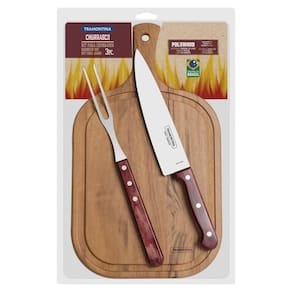 Tenha em mãos um kit da linha Churrasco que deixará o churrasqueiro ainda mais satisfeito. O Kit para Churrasco Tramontina em Aço Inox e Cabo Vermelho Polywood com Tábua de Madeira 3 Peças irá proporcionar para seus dias de confraternização mais facilidade durante o preparo e o momento de servir cortes para seus convidados. A faca e o garfo trinchante são produzidos com lâminas em aço inox, altamente duráveis. Os cabos de madeira tratada Polywood, que oferecem beleza para qualquer ocasião, além de ser resistentes à impactos e altas temperaturas. Fazendo parte desse kit uma belíssima tábua de madeira para deixar os momentos ainda mais especiais.