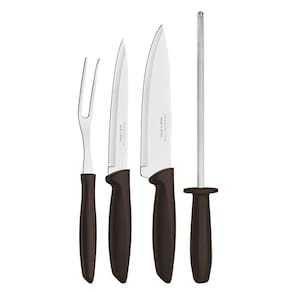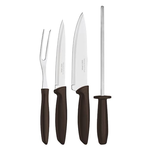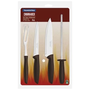 O Kit para Churrasco Tramontina Plenus com Lâminas em Aço Inox e Cabos de Polipropileno Marrom 4 Peças é perfeito para servir à sua família um saboroso churrasco. Com lâminas fabricadas em aço inox, as peças oferecem mais qualidade e resistência, pois são submetidas a um tratamento térmico. E a chaira conta com haste de aço carbono cromado para manter suas facas sempre com um bom fio de corte. Além de deixar os ambientes mais bonitos, devido aos cabos em polipropileno na cor marrom, elas ainda são de fácil e leve manuseio. A Tramontina tem tudo para deixar seus momentos muito mais gostosos!
