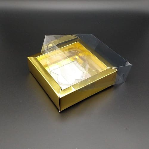 - 5 caixas em papel dourado com tampa e berço para acomodar o coração
