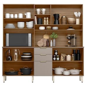 Para deixar seu ambiente funcional e moderno, fechamos parceria com a Demóbile para apresentar o Kit para Cozinha Compacta Amora. Possuindo dez portas sendo duas de vidro e duas gavetas, você terá um amplo espaço interno permitindo que você guarde seus utensílios de uma forma mais prática, além disso, um nicho e um espaço dedicado ao forno elétrico ou micro-ondas, acompanhado de sua incrível bancada. Produzido pela Demóbile é fabricado em MDP, utilizando materiais de alta qualidade, o que garante mais durabilidade e resistência. Com design moderno é a escolha perfeita para quem busca um ambiente funcional, estilizado e bem-organizado. Confira!