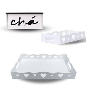Acompanha o produto: - 1 Bandeja Coração 24x151 Bandeja Coração 35x231 Caixa para Chá Garantia: - Sem Garantia