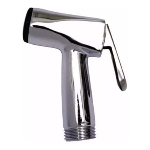 - Tipo de registro: não acompanha o registro. - Tipo de mangueira: flexível em metal com terminais em latão cromado, medindo 1,20 m. - Tipo de gatilho: em metal, com duas opções de controle de jato. - Cor do conjunto: cromado.