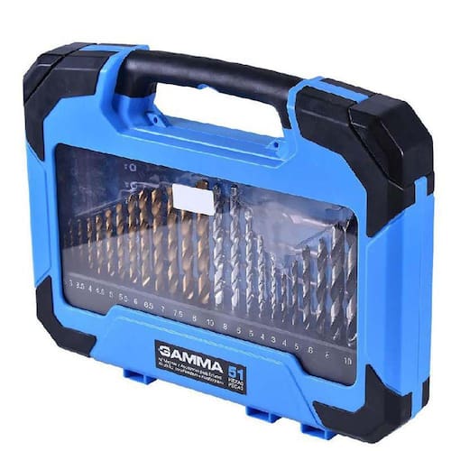 - Marca: Gamma. - Modelo: G19512AC. - Itens Inclusos: - 13 Brocas HSS/Titânio de 2-2, 5-3-3, 5-4-4, 5-5-5, 5-6-6, 5-7-7, 5 e 8mm aço rápido - 6 Brocas para madeira de 3 - 4 - 5 - 6 - 8 - 10mm, - 5 Brocas para alvenaria de 4 - 5 - 6 - 8 - 10mm. - 5 Brocas de encaixe SDS de 5-6-7-8 e 10mm com 160mm de comprimento. - 1 Adaptador para encaixe SDS. - 19 Bits em CRV Aço cromo vanádio de vários tipos com 25mm de comprimento, sendo: - 3 Bits tipo Fenda SL3 - SL4 - SL5. - 4 Bits Quadrados: S0 - S1 - S2 - S3. - 4 Bits tipo Tork: T15 - T20 - T25 - T30. - 4 Bits tipo Phillips: PH0 - PH1 - PH2 - PH3. - 4 Bits tipo Pozidrive: PZ0 - PZ1 - PZ2 - PZ3 . - 1 Adaptador magnético para ponteiras. - 1 Extensão. - Peso do pacote: 1,3 kg. - Garantia: 90 dias. Kit de acessórios com 51 peças é indicado para realização de trabalhos de furação e parafusamento em metal, madeira e alvenaria. Ean: 7898608292490