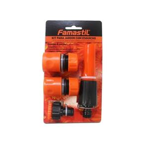 Kit para Jardim Esguicho Regulável com Engate Rápido da Famastil 4 Peças, tem tudo o que você precisa para melhorar a performance durante o uso da mangueira. Os utensílios são produzidos com matéria-prima de alta qualidade que resiste à corrosão e ferrugem. Ideal para irrigação do jardim e limpeza de áreas internas e externas. Para cuidar do jardim não basta ter a mangueira, algumas peças são fundamentais para ajudar na irrigação e limpeza do seu quintal.