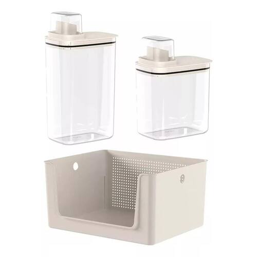 Kit Para Lavanderia Cesto Organizador 16L + 2 Dispenser 2,3L e 1,5L - Ou