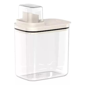 Já os Dispensers Flow são ideais para armazenar produtos de limpeza com eficiência. O Dispenser de 2,3 litros é perfeito para armazenar amaciantes, sabões em pó ou desinfetantes, enquanto o Dispenser de 1,5 litros é ideal para armazenar pequenas quantidades de produtos, mantendo tudo à vista e de fácil acesso. A transparência dos dispensers facilita a visualização do conteúdo, permitindo uma gestão mais eficiente dos produtos e garantindo que você nunca fique sem o essencial durante as tarefas domésticas. Ambos os dispensers possuem um design compacto que se ajusta facilmente ao espaço disponível, contribuindo para uma lavanderia organizada e funcional.