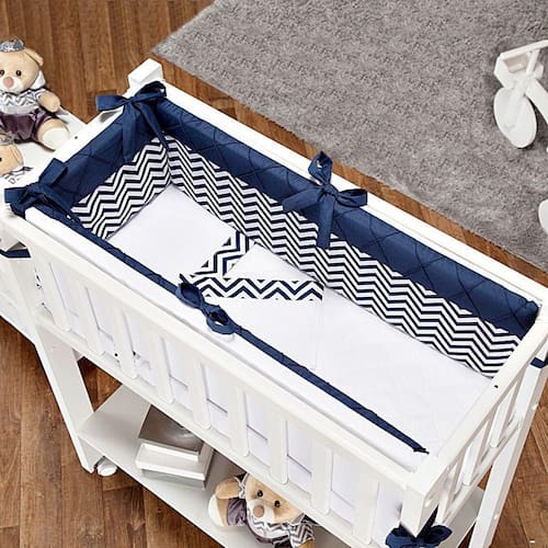 Kit Para Mini Berço 7 Peças Chevron Azul Marinho