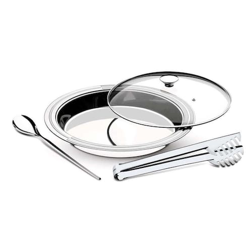 Tenha prazer em receber em receber convidados em sua casa. O Kit para Servir Tramontina Ciclo Redondo em Aço Inox 3 Peças é ideal para servir à mesa com beleza e praticidade. A tampa de vidro mantém os alimentos quentes por mais tempo sem abrir mão da elegância. As peças são totalmente feitas de aço inox, por isso não soltam nenhum resíduo nos alimentos, mantendo-os saudáveis, além de serem altamente duráveis. Tem acabamento em brilho, com detalhes em alto relevo nas bordas. A linha Ciclo é praticidade e qualidade para o seu dia a dia.OrientaçõesPeças totalmente feitas de aço inox, por isso não soltam nenhum resíduo nos alimentos, mantendo-os saudáveis.