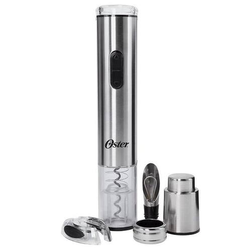 Kit para Vinho Oster Inspire Os melhores vinhos, merecem os melhores acessórios.Uma experiência completa e cheia de saborO Kit de Vinho Inspire Oster tem tudo o que é necessário para aproveitar o momento perfeito e degustar a bebida do princípio ao fim.Muito mais sofisticadoEm aço inoxidável, o Kit vem com um sofisticado estojo de couro para guardar todos os acessórios.Muito mais praticidadeCortador de lacre de alumínio.Muito mais facilidadeAbridor de vinhos em inox. Funciona com pilhas AA e basta apertar um botão para remover a rolha.Muito mais qualidadeBomba a vácuo, retira o ar da garrafa e preserva o sabor do vinho por mais tempo.Benefícios:Sofisticado e de primeira qualidade um kit desenvolvido para os amantes do vinho.Acessórios que facilitam a experiência de degustação e acabamento em aço inox escovado, que traz todo o requinte que os bons vinhos merecem.Prático cortador de lacres de alumínio.Elegante abridor elétrico de vinho que funciona com 4 pilhas aa, basta apertar um botão para remover a rolha.Bomba a vácuo que elimina o ar da garrafa, mantendo as propriedades do vinho por mais tempo.Especificações técnicas:Modelo: fpstbw8055Funciona com 4 pilhas AaPotência: 50wConsumo: 0,05kwhDimensões:Altura: 5,3 cmLargura: 27,5 cmProfundidade: 5,5 cmPeso: 1,18 kg