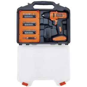 Kit Parafusadeira/Furadeira 12V 3/8 com 31pcs Black&Decker Tecnologia de excelência Seu mandril de 10 mm permitirá que você manipule facilmente a ferramenta com segurança e precisão. Além disso, sua velocidade variável oferece uma grande experiência de uso, adaptada às suas necessidades e seus requerimentos. Versatilidade e eficiência Sua função parafusadeira permitirá que você explore seu produto ao máximo. Poderá fazer aplicações de diferentes magnitudes com grande precisão e qualidade. Leve e fácil de manusear Como não há cabos no meio, você se sentirá mais confortável ao manipular isto. Além disso, causa menos fadiga após o uso intensivo. Não haverá problemas como não encontrar um contato ou que o cabo seja muito curto para a área onde você vai usá-lo. Especificações técnicas: - Tensão da Bateria: 12V - 1,5Ah - Bateria de Íons de Lítio - Velocidade: 0 - 900 rpm - Mandril: 3/8 10mm Capcidade de Perfuração - Metal: 1/4 6,5 mm - Parafuso: 1/4 6,5 mm - Madeira: 5/8 15 mm Acompanha: - Maleta - Carregador Bivolt - Extensor Magnético 30 bits do fabricante de 1 ano A NR Estética oferece uma de 7 dias em seus produtos Marca: Não Informado Ean: 885911563635