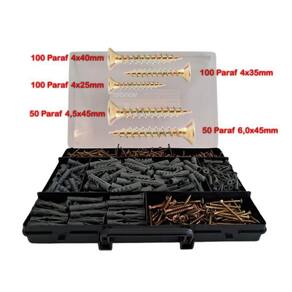 Descrição Descrição: Kit Parafuso Chipboard com maleta organizadora plástica VD 8020 VONDER. Acompanha bucha plástica para tijolo vazado, bucha plástica de fixação + parafusos madeira chipboard, cabeça chata, fenda cruzada/phillips Vonder. - Parafusos Possui acabamento bicromatizado, que aumenta a resistência contra corrosão/oxidação, além de cabeça tipo phillips, que proporciona maior força de aperto e menor possibilidade da chave ou bits escapar e riscar a peça que está sendo trabalhada. Indicado para fixações em madeiras e derivados, como: aglomerados, pínus e MDF. Pode ser utilizado também em alvenaria com o auxílio de uma bucha para tijolo vazado, que acompanha o kit. Conhecido como parafuso CHIPBOARD. Devido a sua rosca com filetes espaçados e ângulo agudo, permite a aplicação sem a necessidade de pré furo - Bucha Bucha plástica de fixação - Excelente elasticidade, amortecendo vibrações. Indicada para fixações em concreto e alvenaria. Bucha plástica para tijolo vazado -Fabricadas em plástico de elevada qualidade, garantindo uma instalação segura e fixação de qualidade. Indicada para fixações em tijolo vazado/oco. - Organizador plástico duplo, VD 8020, VONDER legal: 90 dias Detalhes TécnicosModelo: VD 8020 Material:Polipropileno Comprimento:325 mm Largura:220 mm Altura:50 mm Capacidade de carga kgf :2 kgf Cor do organizador para ferramentas:Preto e transparente Massa aproximada peso :0,4 kg - Conteúdo da maleta organizadora: Parafusos 100 Peças - Parafuso Para Madeira 4,0 X 25mm Cabeça Chata Bicromatizado 100 Peças - Parafuso Para Madeira 4,0 X 35mm Cabeça Chata Bicromatizado 100 Peças - Parafuso Para Madeira 4,0 X 40mm Cabeça Chata Bicromatizado 050 Peças - Parafuso Para Madeira 4,0 X 45mm Cabeça Chata Bicromatizado 050 Peças - Parafuso Para Madeira 6,0 X 40mm Cabeça Chata Bicromatizado Buchas 50 Peças - Bucha Plástica F-06 - 6mm 50 Peças - Bucha Plástica F-08 - 8mm 050 Peças - Bucha Plástica F-10 - 10mm 050 Peças - Bucha plástica para tijolo vazado VR6 - 6mm 050 Peças - Bucha plástica para tijolo vazado VR8 - 8mm 050 Peças - Bucha plástica para tijolo vazado VR10 - 10mm Quantidade Peças Total do KIT: 700 peças Material Parafuso: Aço Carbono Material Bucha: Plástica Uso: Profissional