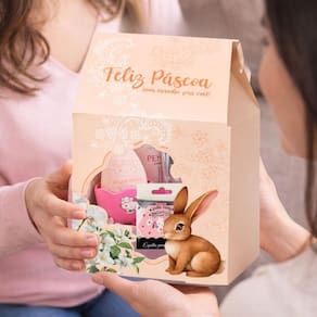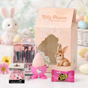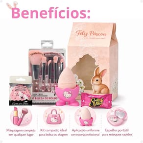 Benefícios Principais Kit completo com itens úteis para o dia a dia Caixa temática de Páscoa decorada e pronta para presente Pincéis funcionais ideais para maquiagem completa Esponja para aplicação uniforme de produtos líquidos e cremosos Espelho de bolsa prático para retoques rápidos Acompanha bombom Sonho de Valsa como mimo especial