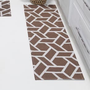 Kit Passadeira Tapete Cozinha 3 Peças Jacquard Base Antiderrapante - Geométrico Avelã