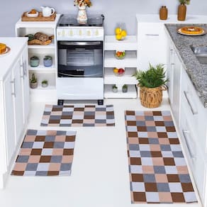 A base antiderrapante garante maior segurança e estabilidade durante o uso, prevenindo escorregões mesmo em pisos lisos. Resistente ao uso diário, o kit é funcional e valoriza o ambiente da cozinha com charme e conforto sob os pés.