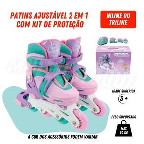 Kit patins com acessórios de segurança rosa claro - tam. 30-33 Kit patins com acessórios de segurança rosa claro Você já imaginou como é frustrante para uma criança querer se divertir sobre rodas e não ter o equipamento certo Sem os patins adequados e a proteção necessária, os pequenos podem se sentir inseguros e acabar perdendo a oportunidade de explorar novas aventuras. Com o nosso kit de patins, cada passeio se transforma em uma nova experiência emocionante ele é perfeito para crianças que estão começando ou que já têm alguma prática. O modelo ajustável do tamanho 30 ao 33 cresce junto com a criança, garantindo conforto e economia. Além disso, o kit inclui capacete, joelheiras, cotoveleiras e munhequeiras, tudo pensado para proteger e proporcionar tranquilidade aos pais. Estimule o equilíbrio, a coordenação motora e o amor pelos esportes desde cedo Benefícios - estimula o equilíbrio e a coordenação motora - ajustável para acompanhar o crescimento da criança - inclui equipamentos de proteção para segurança - proporciona diversão e liberdade em cada passeio Especificações técnicas - dimensões patins: alt.: 26cm x larg.: 10cm x compr.: 30cm - peso: 1,40kg - dimensões capacete: alt.: 13cm x larg.: 20cm x compr.: 26cm - peso: 0,90g - dimensões joelheira: alt.: 13cm x larg.: 1cm x compr.: 13cm - peso: 0,33g - dimensões cotoveleira: alt.: 13cm x larg.: 1cm x compr.: 1cm - peso: 29g - dimensões munhequeira: alt.: 13cm x larg.: 1cm x compr.: 8cm - peso: 1,40kg - registro inmetro: 003005/2021 Conteúdo da embalagem - 01 par de patins - 01 par de joelheiras - 01 capacete de proteção - 01 par de cotoveleiras - 01 par de munhequeiras - 02 chaves l - 02 pinos de reposição - 02 parafusos e 02 porcas Não deixe seu filho perder a chance de viver momentos incríveis sobre rodas adquira já o kit de patins e veja a alegria em cada aventura Informações importantes sobre a compra - com de fábrica Dúvidas frequentes: 2 - em quanto tempo meu pedido será enviado 3 - é confiável fazer esta compra Resposta: desde a criação da nossa empresa já temos milhares de clientes satisfeitos em outras lojas online. Somos uma loja oficial neste marketplace. Além de você ter todas as garantias desta plataforma, ainda lhe oferecemos de fábrica. 4 - os produtos possuem Resposta: sim, oferecemos de 30 dias em todos nossos produtos. Caso ocorra qualquer problema iremos tratar da melhor forma para resolver o ocorrido. 5 - essa compra é segura Resposta: sim, oferecemos total segurança na sua compra bem como sigilo dos seus dados. 6 - e se eu não gostar do produto, terei meu dinheiro de volta Resposta: de acordo com o cdc código de defesa do consumidor todo cliente de compras online tem até 7 dias para devolver o produto em caso de arrependimento. E você não terá custo na devolução. Lembrando que você será reembolsado em 100% do valor da compra. Caso você tenha alguma dúvida, nos envie uma mensagem e responderemos o mais rápido possível. Marca: Não Informado