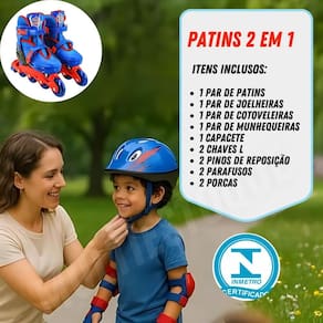 Kit patins azul com acessórios de segurança - tam. 30-33 Conjunto de patins com acessórios de segurança azul Você já considerou a importância de as crianças se divertirem de maneira segura enquanto aprendem a patinar Sem o equipamento adequado, elas podem se machucar e perder a confiança, o que pode afastá-las da prática esportiva. Com nosso conjunto de patins, cada passeio se torna uma nova aventura é ideal para crianças que estão começando ou já têm alguma experiência. O modelo ajustável tamanho 30 ao 33 acompanha o crescimento do seu pequeno, garantindo conforto e economia. Além disso, o conjunto inclui capacete, joelheiras, cotoveleiras e munhequeiras, tudo pensado para proteger e proporcionar tranquilidade aos pais. Incentive o equilíbrio, a coordenação motora e o amor pelos esportes desde cedo Vantagens - segurança assegurada com equipamentos de proteção - ajustável para acompanhar o crescimento da criança - estimula habilidades motoras e a prática de esportes - diversão em família e momentos inesquecíveis Especificações técnicas - dimensões dos patins: alt.: 26cm x larg.: 10cm x compr.: 30cm - peso: 1,40kg - dimensões do capacete: alt.: 13cm x larg.: 20cm x compr.: 26cm - peso: 0,90g - dimensões da joelheira: alt.: 13cm x larg.: 1cm x compr.: 13cm - peso: 0,33g - dimensões da cotoveleira: alt.: 13cm x larg.: 1cm x compr.: 1cm - peso: 29g - dimensões da munhequeira: alt.: 13cm x larg.: 1cm x compr.: 8cm - peso: 1,40kg - tamanho p 30-33 - composição: corpo em polipropileno pp , rodas em pvc 72mm - registro inmetro: 003005/2021 Conteúdo da embalagem - 01 par de patins - 01 par de joelheiras - 01 capacete de proteção - 01 par de cotoveleiras - 01 par de munhequeiras - 02 chaves l - 02 pinos de reposição - 02 parafusos e 02 porcas Não deixe seu pequeno perder a oportunidade de se divertir com segurança adquira já o conjunto de patins e veja a alegria nos olhos dele Informações importantes sobre a compra - com de fábrica Dúvidas frequentes: 2 - em quanto tempo meu pedido será enviado 3 - é confiável fazer esta compra Resposta: desde a criação da nossa empresa, já temos milhares de clientes satisfeitos em outras lojas online. Somos uma loja oficial neste marketplace. Além de você ter todas as garantias desta plataforma, ainda oferecemos de fábrica. 4 - os produtos possuem Resposta: sim, oferecemos de 30 dias em todos os nossos produtos. Caso ocorra qualquer problema, iremos tratar da melhor forma para resolver a situação. 5 - essa compra é segura Resposta: sim, garantimos total segurança na sua compra, bem como sigilo dos seus dados. 6 - e se eu não gostar do produto, terei meu dinheiro de volta Resposta: de acordo com o cdc código de defesa do consumidor , todo cliente de compras online tem até 7 dias para devolver o produto em caso de arrependimento, sem custo na devolução. Você será reembolsado em 100% do valor da compra. Caso tenha alguma dúvida, nos envie uma mensagem e responderemos o mais rápido possível.