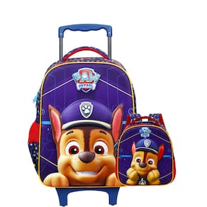Kit Patrulha Canina Luxo 3D Mochila Rodas + Lancheira