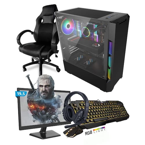 Conteúdo da Embalagem: 1 Computador Neologic Smart PC Gamer, 1 Kit Gamer, 1 Monitor, 1 Cadeira