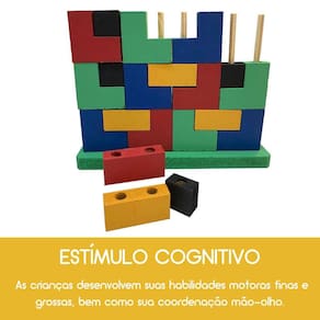 Blocos de Encaixe Vertical Tetris em MDF Brinquedo Educativo
