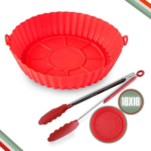 Forma de Silicone ideal para fritadeiras elétricas para fazer frituras e cozimentos. Feita de silicone ela é antiaderente e é mais fácil de se lavar. Suporta até 220 graus celsius. Possui um relevo de grades em sua base que impede que acumule gordura embaixo de seu alimento. ESPECIFICAÇÕES: - Material: Silicone