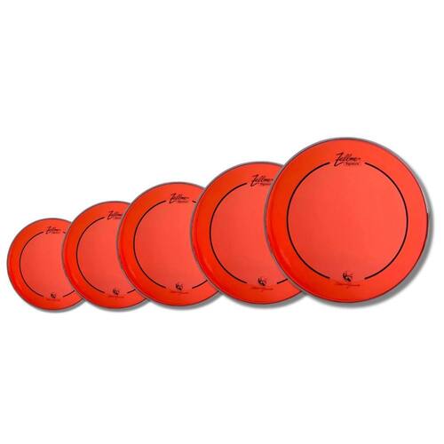 Pensando numa melhor sonoridade para os tons, criamos uma pele de filme duplo um pouco mais fina. Um filme vermelho de 0,188mm sobreposto por um transparente de 0,125mm, criando assim uma pele mais dinâmica e com um visual incrível.