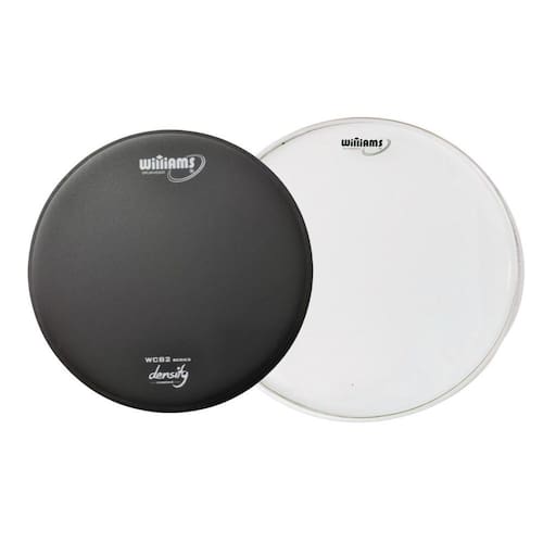Pele dupla e porosa com filme duplo 10 mil de espessura cada filme Porosidade com acabamento preto Possui óleo entre as peles, no formato de pele hidráulica Boa durabilidade com excelente controle de harmônicos e ressonância Semelhante a Remo Pinstripe Coated e Evans Hydraulic Coated acessíveis Williams é uma marca brasileira de peles importadas Pele acessível com bom custo x benefício
